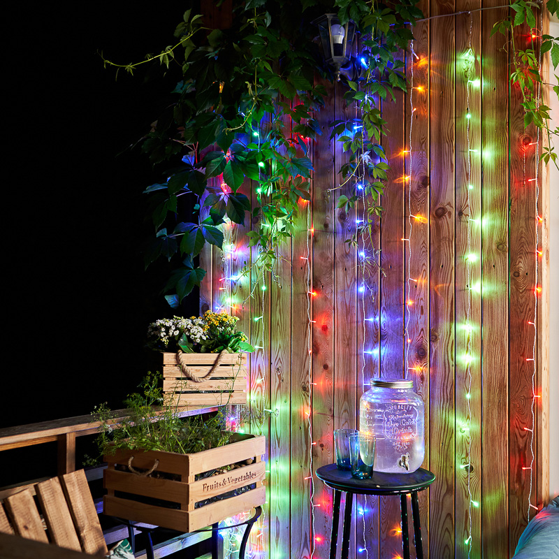 Гирлянда «Дождь» 2×3 м — эффектное интерьерное украшение, способное подарить яркие впечатления гостям и внести атмосферу праздника в любую обстановку. Светодиодный занавес высотой 3 метра дает возможность оформить окна в помещениях с высокими потолками, создать уникальный декор фотозоны, обустроить нишу или открытый проем. Трехметровый шнур питания позволяет подключить гирлянду в электросеть без удлинителя. 240 светодиодов «мультиколор» загораются яркими разноцветными искрами и меняют режимы при помощи контроллера с 8 опциями.