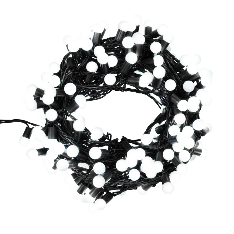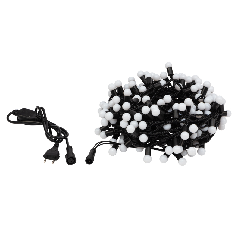 Степень влагозащиты IP65 и ПВХ-провод обеспечивают возможность использования гирлянды на открытом воздухе.