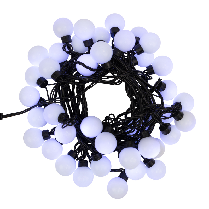 Степень влагозащиты IP65 и ПВХ-провод обеспечивают возможность использования гирлянды на открытом воздухе.