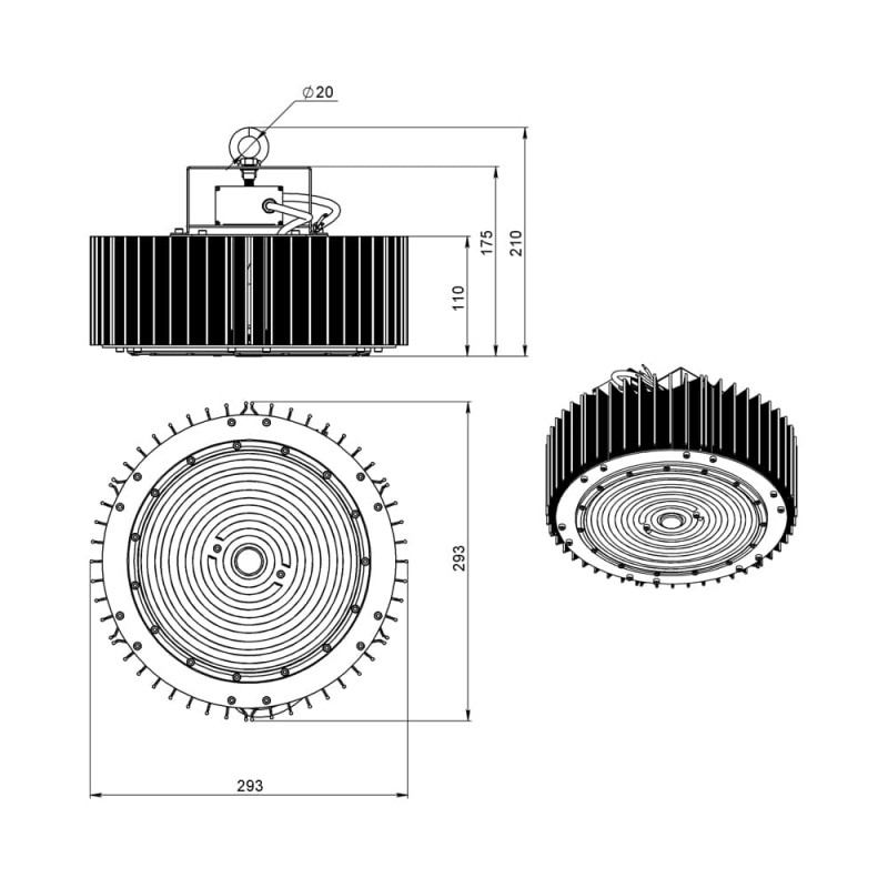 Светильники можно монтировать на рым-болт (базовая комплектация) или кронштейн (опционально).