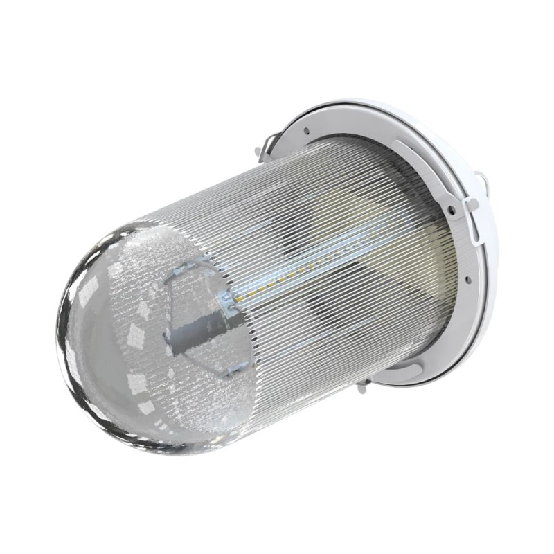 Рассеиватель изготовлен из стекла. Для его дополнительной защиты от механических повреждений, на светильник можно установить специальную металлическую решётку.