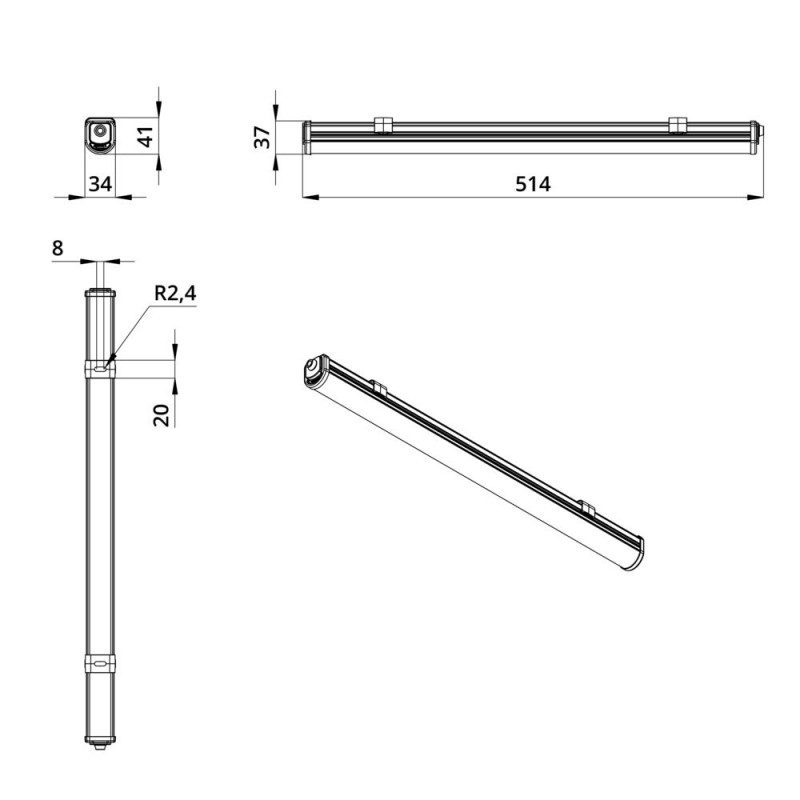 Полукруглый рассеиватель из УФ-стабилизированного поликарбоната создает мягкое освещение с широким углом излучения.
