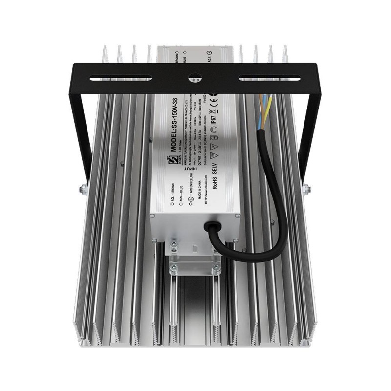 Источник питания наружного исполнения, его металлический корпус залит теплопроводящим компаундом. За счёт этого снижается нагрев светодиодного модуля и самого источника питания, поэтому светильник служит дольше. Также источник питания защищён от микросекундных импульсов высокой энергии. Это позволяет сохранять работоспособность светильника даже при появлении в сети посторонних помех.