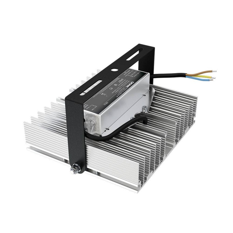 Источник питания наружного исполнения, его металлический корпус залит теплопроводящим компаундом. За счёт этого снижается нагрев светодиодного модуля и самого источника питания, поэтому светильник служит дольше. Также источник питания защищён от микросекундных импульсов высокой энергии. Это позволяет сохранять работоспособность светильника даже при появлении в сети посторонних помех.