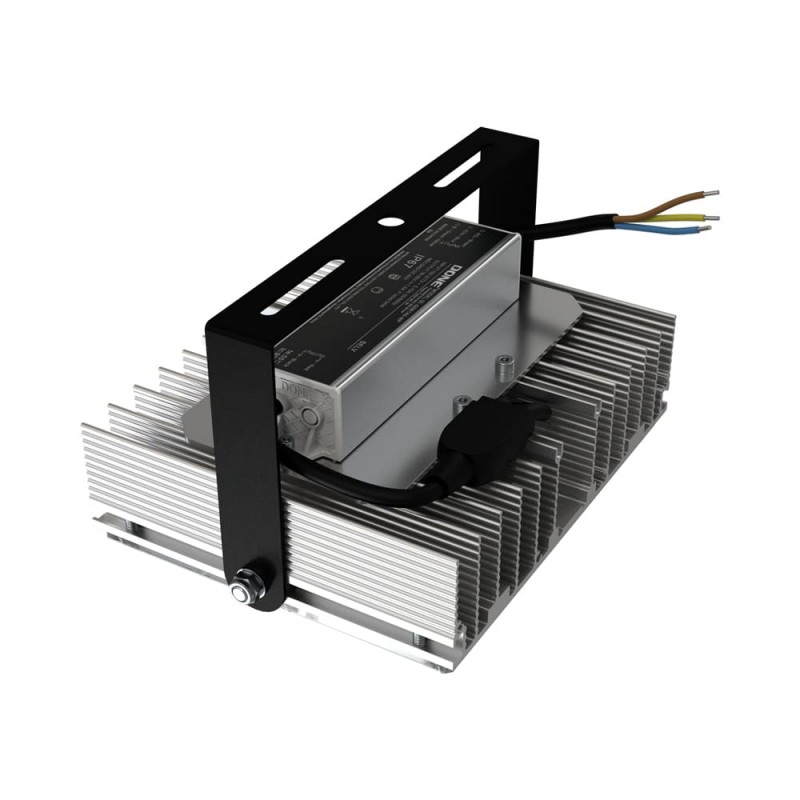 Источник питания наружного исполнения, его металлический корпус залит теплопроводящим компаундом. Это снижает температуру на элементах источника питания, увеличивая срок его службы. Кроме того, за счёт наружного исполнения источника снижается нагрев светодиодного модуля, и сам светильник служит дольше.