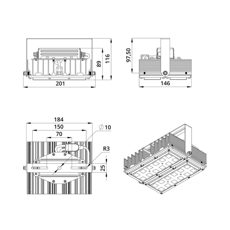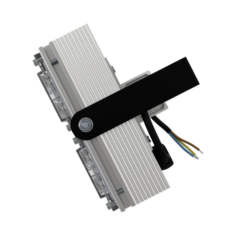 В комплекте идёт кронштейн, который позволяет регулировать угол наклона прожектора. Специальные зубцы на кронштейнах (для светильников 200-300 Вт) дополнительно облегчают регулировку положения прожектора.