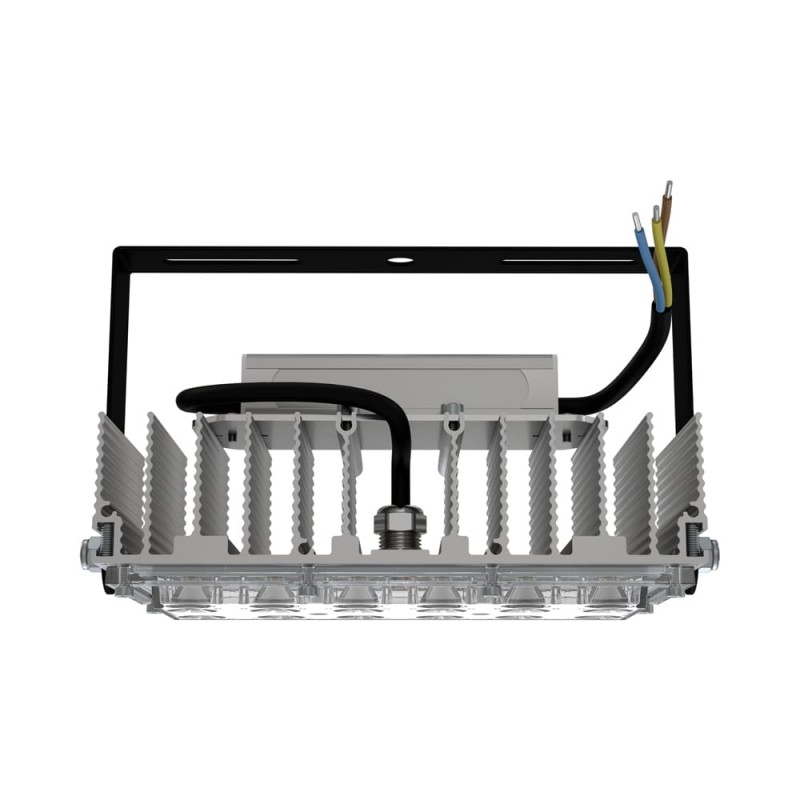 В комплекте идёт кронштейн, который позволяет регулировать угол наклона прожектора. Специальные зубцы на кронштейнах (для светильников 200-300 Вт) дополнительно облегчают регулировку положения прожектора.