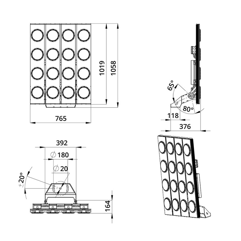 В комплекте идёт кронштейн, который позволяет регулировать угол наклона светильников. Специальные зубцы на кронштейнах дополнительно облегчают регулировку положения прожектора.