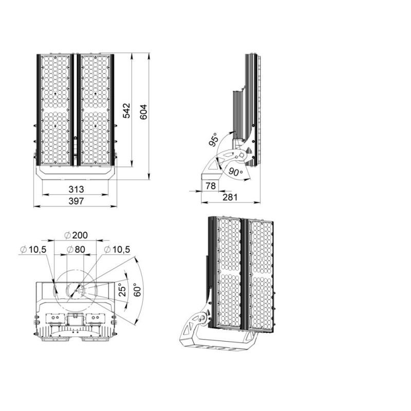 Серия уличных светодиодных прожекторов для освещения открытых объектов: спортивных стадионов, бассейнов, теннисных кортов, территорий площадей, парковок, портов.