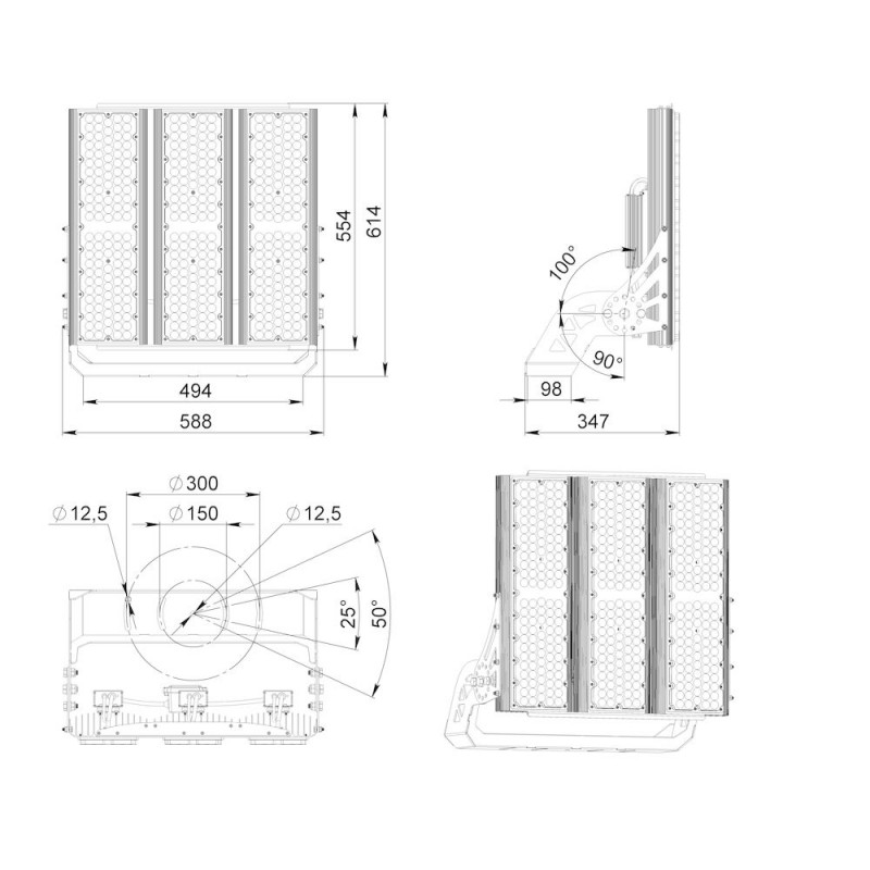 Серия уличных светодиодных прожекторов для освещения спортивных стадионов, лыжных трасс, ипподромов. Благодаря высокому индексу цветопередачи CRI90 и цветовой температуре 5700 K прожекторы могут использоваться для освещения спортивных объектов и мест проведения массовых мероприятий, где предполагается телевизионная трансляция. Опционально доступно исполнение светильника с индексом передачи красного цвета R9 не менее 75, в базовом исполнении не менее 60.