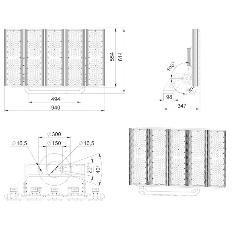 Серия уличных светодиодных прожекторов для освещения спортивных стадионов, лыжных трасс, ипподромов. Благодаря высокому индексу цветопередачи CRI90 и цветовой температуре 5700 K прожекторы могут использоваться для освещения спортивных объектов и мест проведения массовых мероприятий, где предполагается телевизионная трансляция. Опционально доступно исполнение светильника с индексом передачи красного цвета R9 не менее 75, в базовом исполнении не менее 60.
