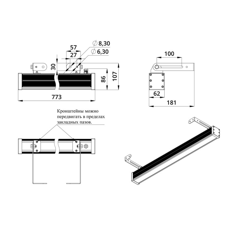 Светильники просты в монтаже за счёт кронштейна с удобной системой фиксации угла поворота.