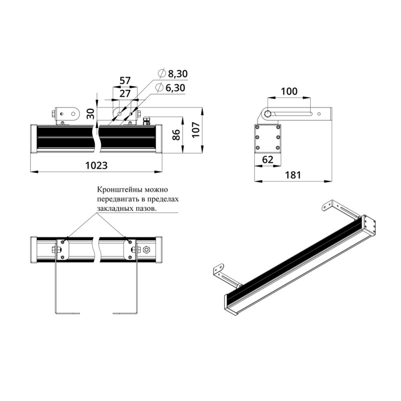Светильники просты в монтаже за счёт кронштейна с удобной системой фиксации угла поворота.