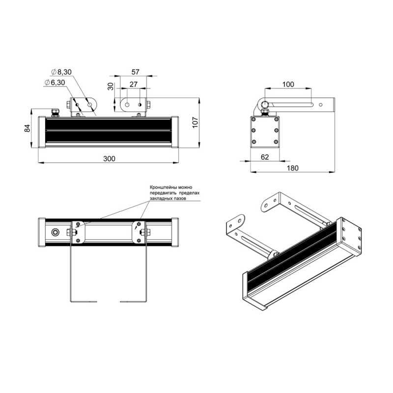 Светильники «Барокко Оптик Монохром» устанавливаются на кронштейн с возможностью регулировки угла наклона и удобной системой фиксации угла поворота светильника.