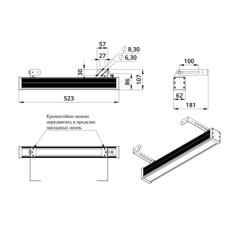 Источник питания в пластиковом корпусе, защищённый от микросекундных импульсов высокой энергии, расположен внутри корпуса светильника.