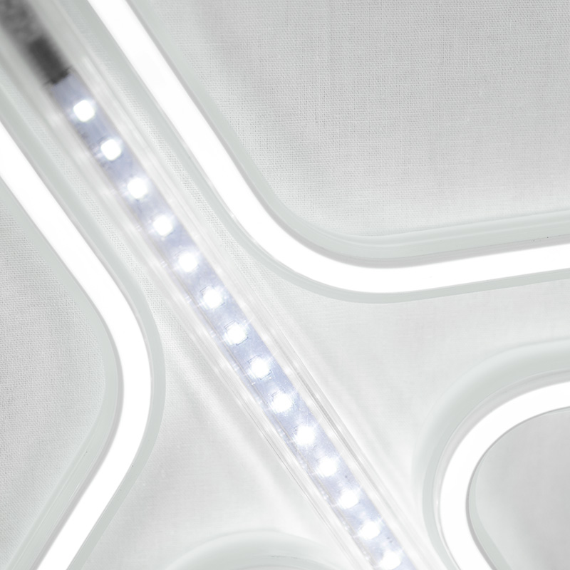 «Снежинка» имеет размер 60х60 см, выполнена из белого неона и белых светодиодных лучей.