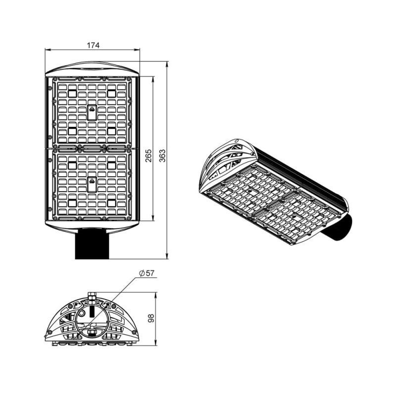 Конструкция корпуса позволяет менять источник питания и основание со светодиодным модулем без демонтажа светильника с опоры.