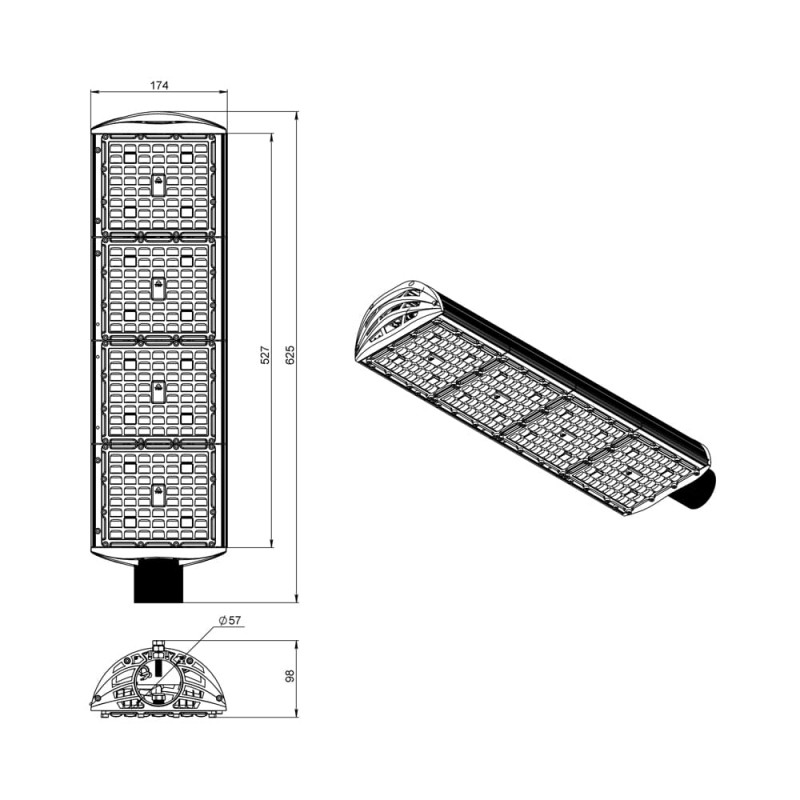 Конструкция корпуса позволяет менять источник питания и основание со светодиодным модулем без демонтажа светильника с опоры.
