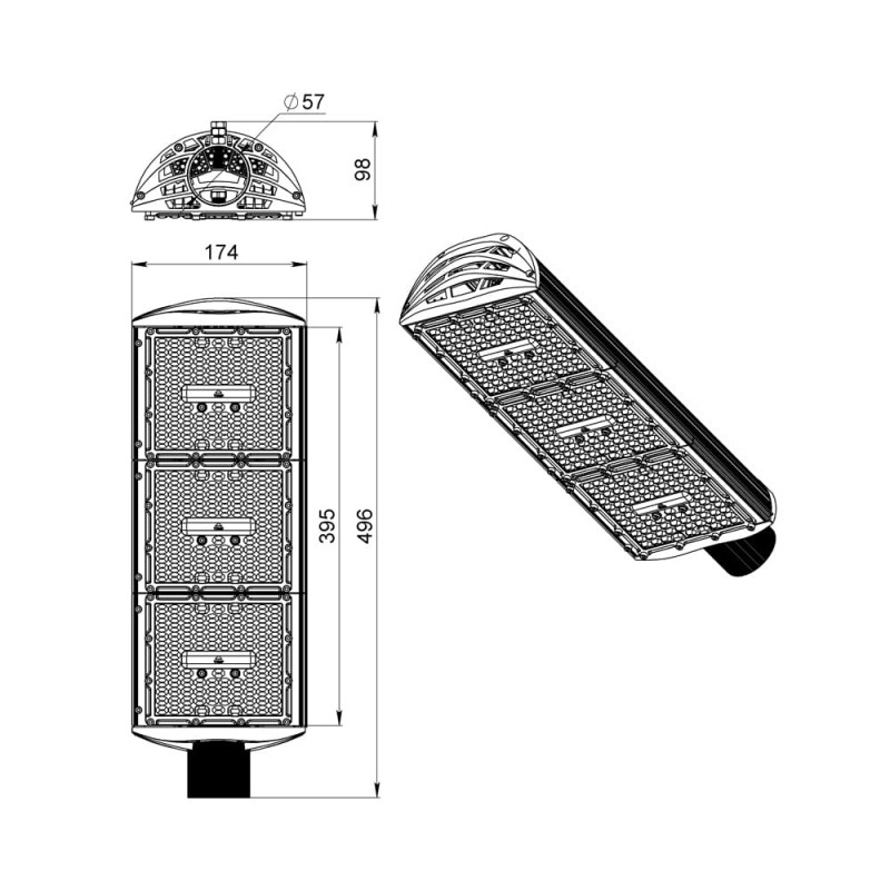 Светильники крепятся на консоль круглого сечения диаметром до 57 мм. Данная серия не имеет возможности регулировки угла наклона светильников.