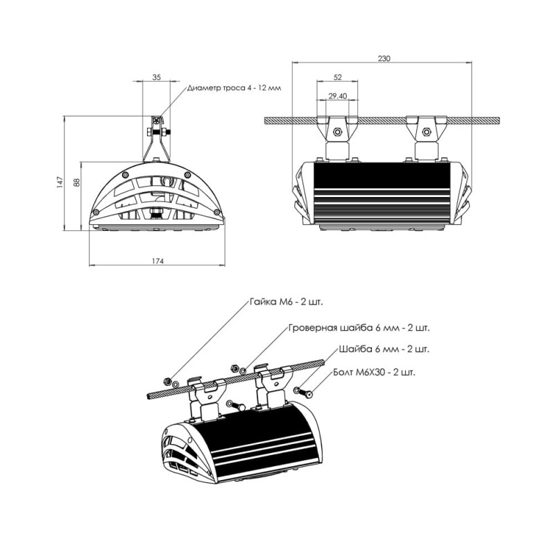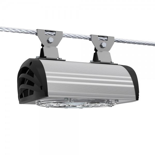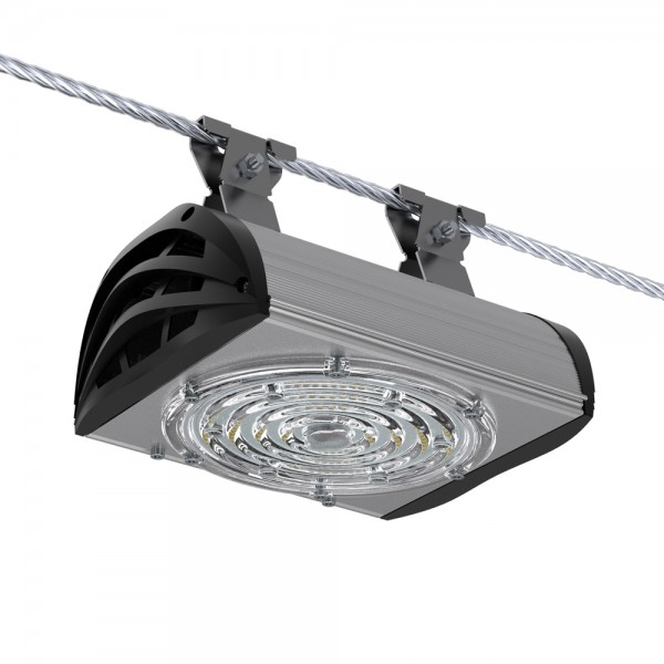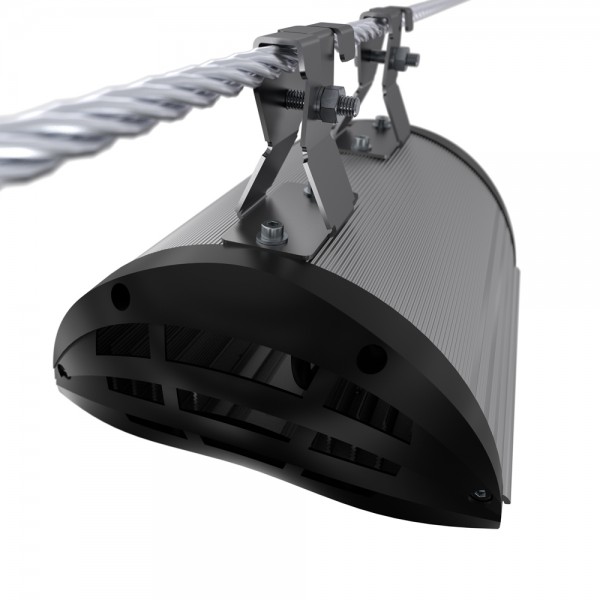 Светильники крепятся на трос-растяжку диаметром 4-12 мм.