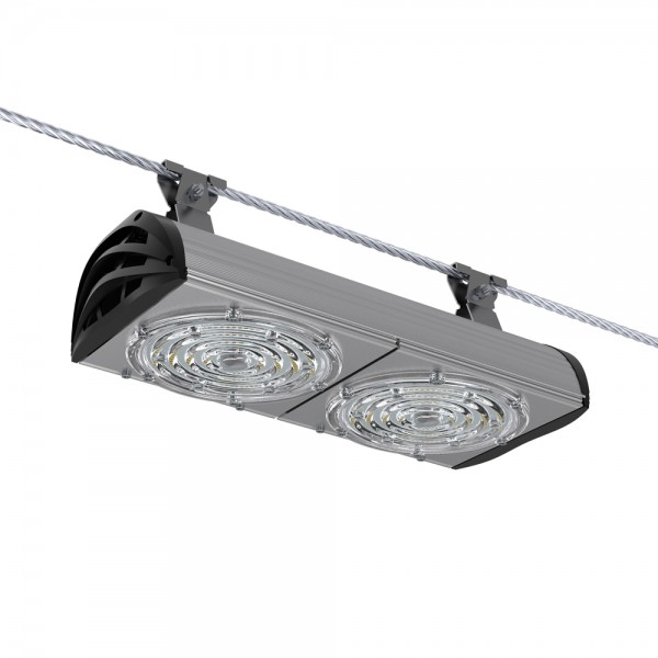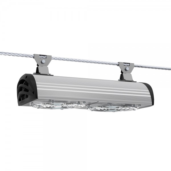 Светильники крепятся на трос-растяжку диаметром 4-12 мм.