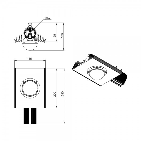 Светильники крепятся на консоль круглого сечения диаметром до 57 мм. Данная серия не имеет возможности регулировки угла наклона светильников.