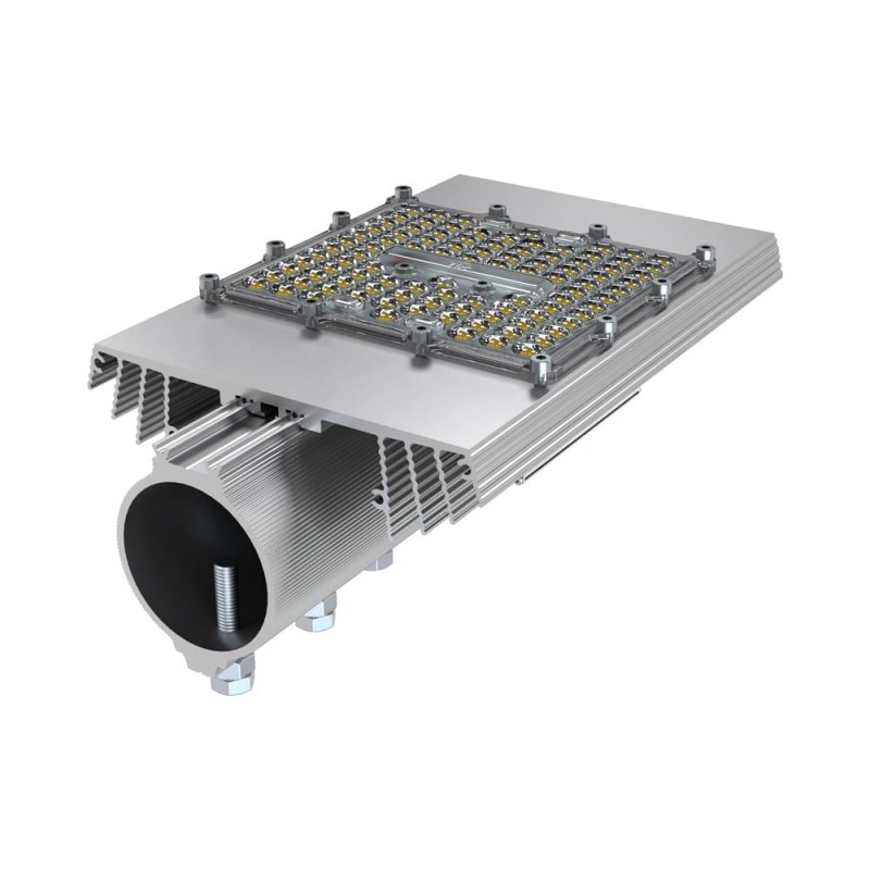 Светильники крепятся на консоль круглого сечения диаметром до 57 мм. Данная серия не имеет возможности регулировки угла наклона светильников.