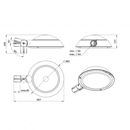С помощью консольного крепления светильник может устанавливаться как на вертикальную, так и на горизонтальную опору. Стандартный диаметр посадочного отверстия – 64 мм. В комплекте идут крепежные болты.